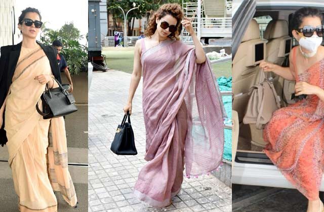 एयरपोर्ट पर दिखा कंगना का खूबसूरत लुक, ब्लू साड़ी में पोज देती आयी नजर